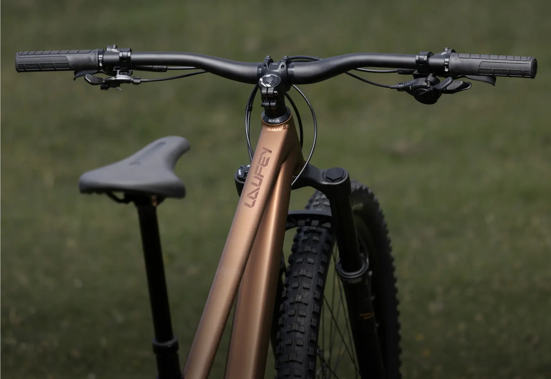 The long travel 140mm fork matches Laufey's fun loving nature, letting you push hard even when things get rough.
